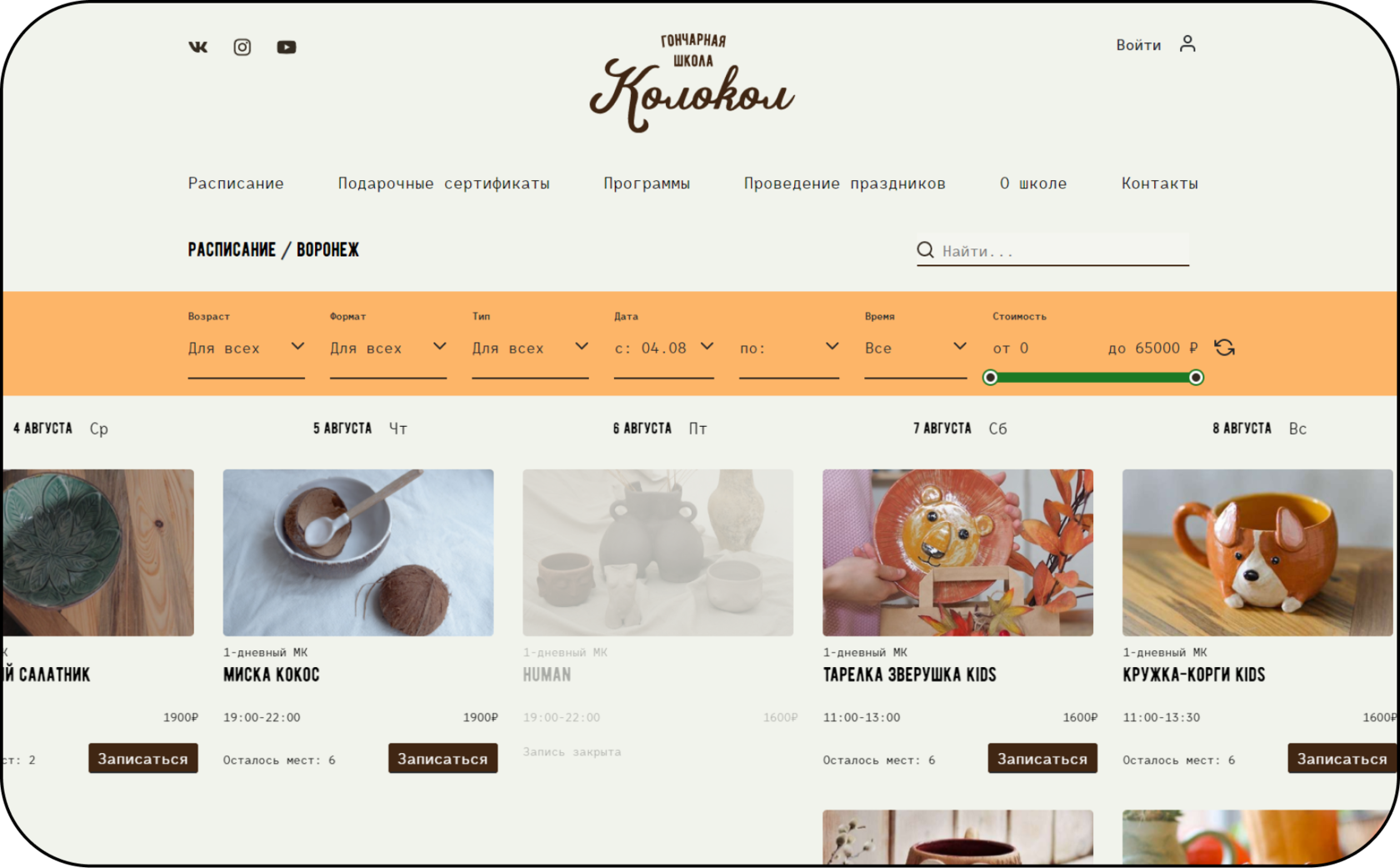 Сперва — на своей кухне: купили два круга и маленькую печь, пригласили мастера и запустили первые курсы. Желающих оказалось так много, что через пару месяцев кухня перестала вмещать учеников. Тогда мы арендовали помещение и открыли Колокол.